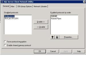 Most likely you cant connect to management studio. In this scenario sometimes you can make remote connections from another client. The easiest solution is to run “cliconfg.exe” network utility and remove the force encryption option and enabled protocols should contain both “TCP/IP” and “NAMED PIPES”.